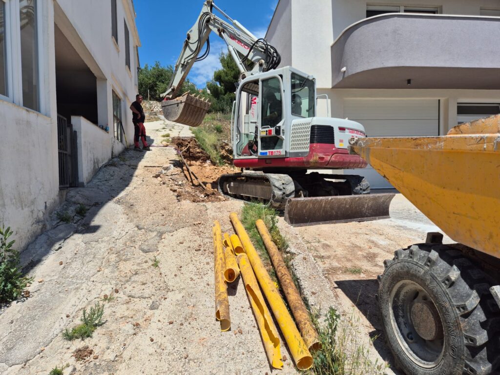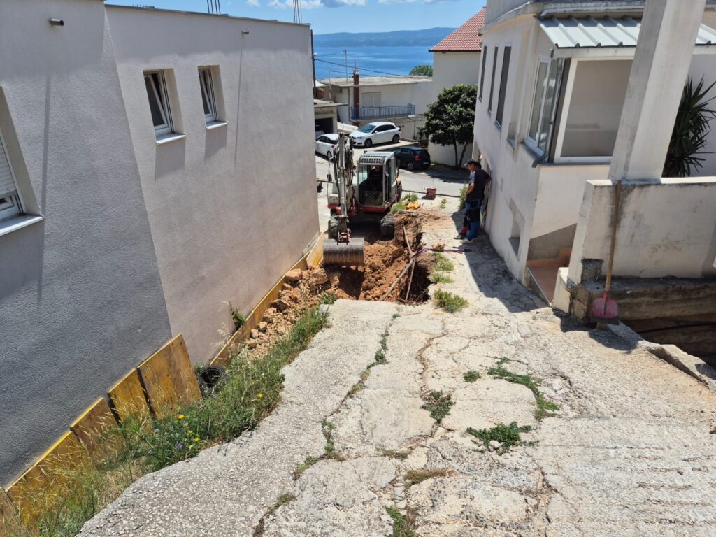 Radovi financirani iz Proračuna Općine Dugi Rat obuhvaćaju izgradnju AB potpornog zida ulice te uređenje kolnika.